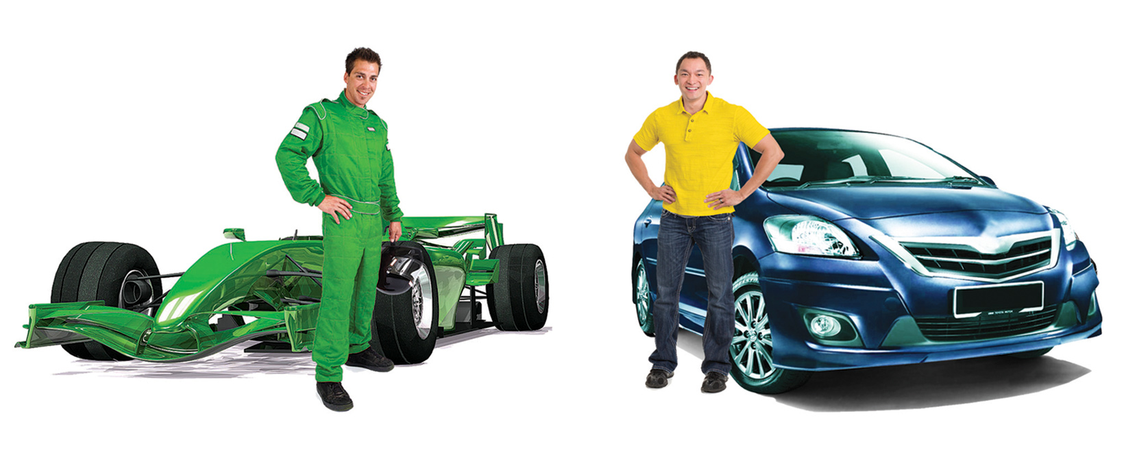 Singlife explains the factors that go into car insurance by comparing insurance for race cars with a common vehicle.