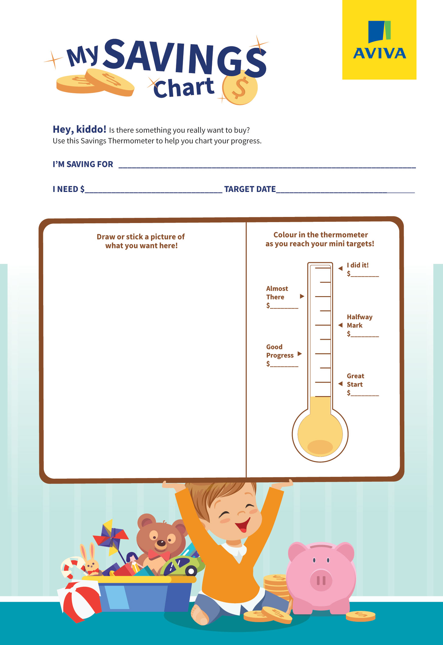 It’s never too young to teach your child the importance of savings! Get your child to draw or stick a picture of what they want and save for it.