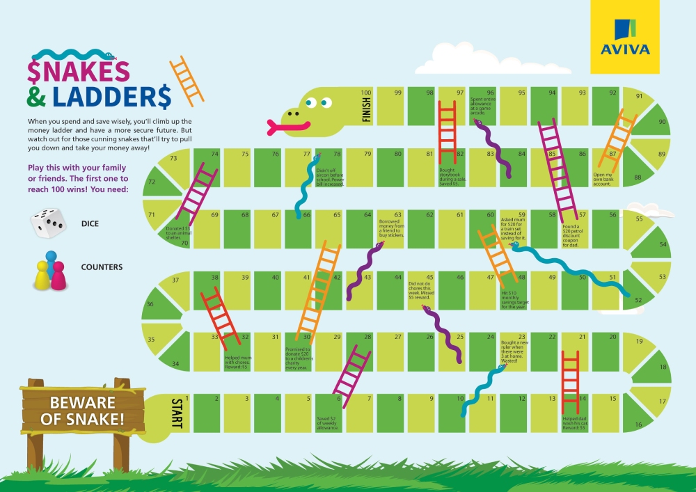 Gather your family and enjoy this game of snakes and ladders. All you need is dice and counters.